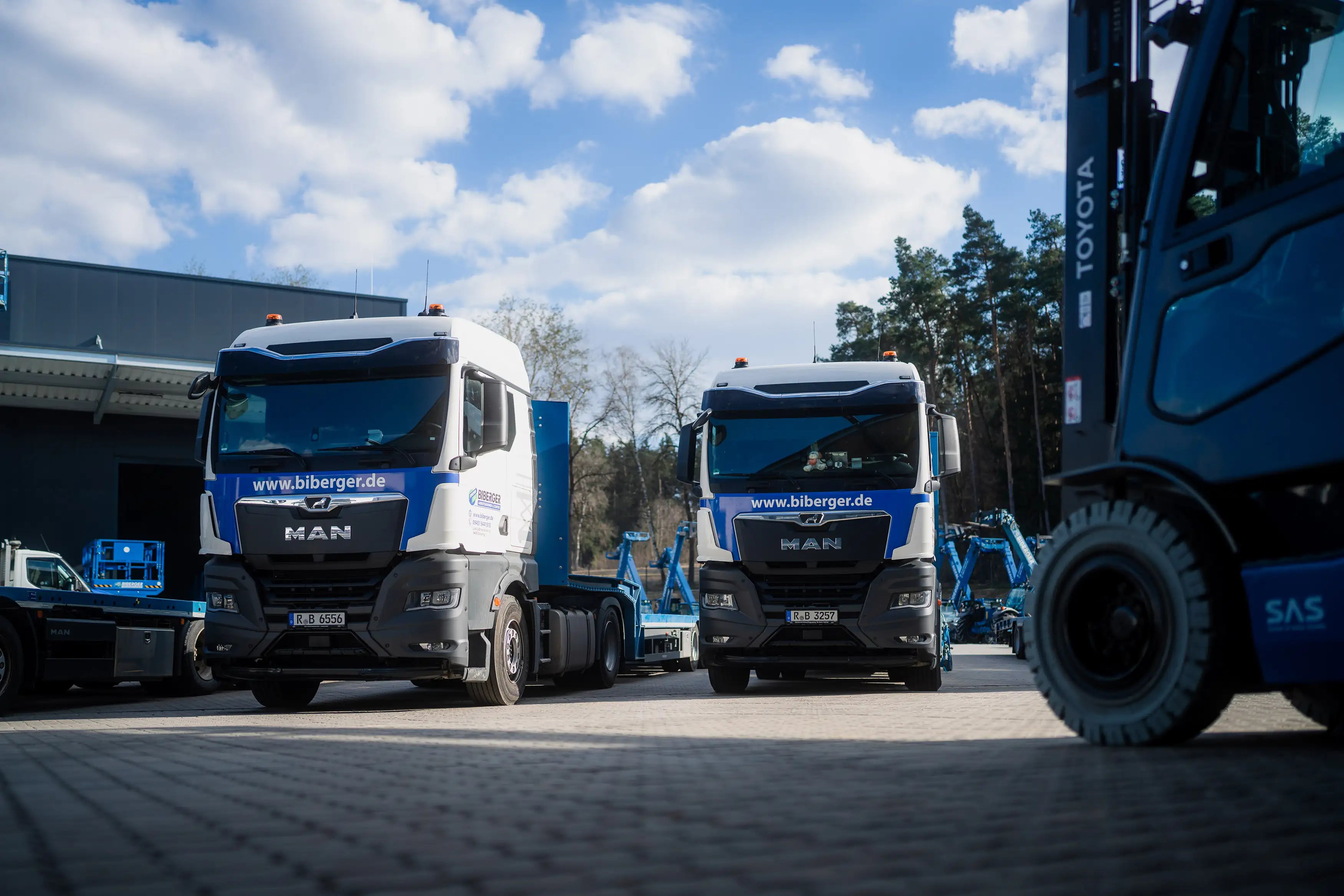 Bei BIBERGER bekommst du nicht nur die passende Arbeitsbühne oder den richtigen Stapler, sondern auch den kompletten Transportservice dazu. Mit unserem eigenen Tieflader-Fuhrpark liefern wir Maschinen mit einem Eigengewicht von bis zu 25 Tonnen direkt auf deine Baustelle – zuverlässig, pünktlich und sicher. Ob in München, Regensburg, Landshut, Straubing oder im gesamten süddeutschen Raum: Wir bringen deine Maschine dorthin, wo sie gebraucht wird.